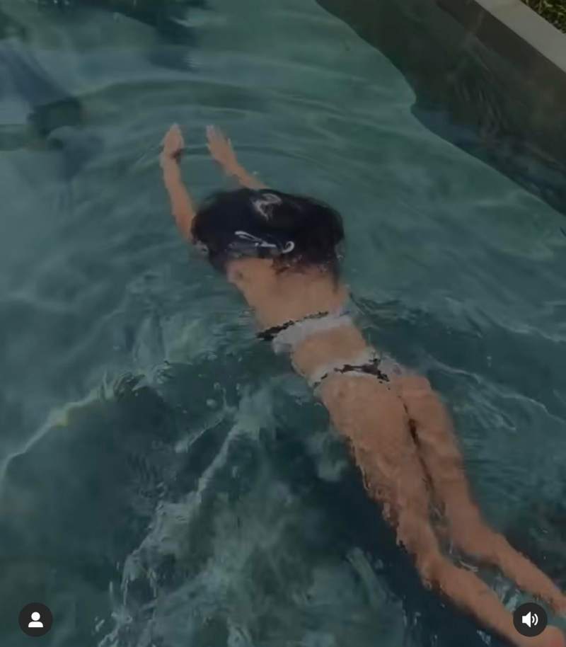 Để tự tin mặc đồ bơi, cô dành nhiều thời gian tập luyện.