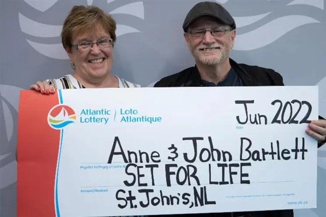 Ông John Bartlett và bà Anne nhận tiền trúng số Set for Life