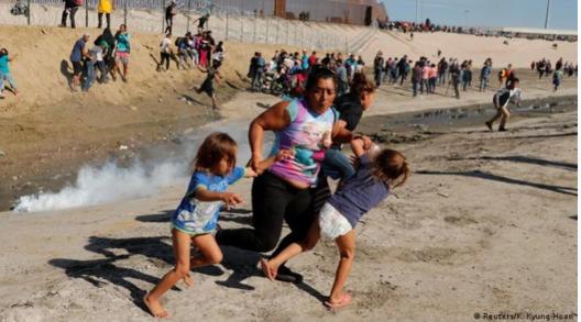 Một gia đình di cư đến Mỹ đang cố chạy khỏi lựu đạn hơi cay năm 2018. Ảnh: Reuters.