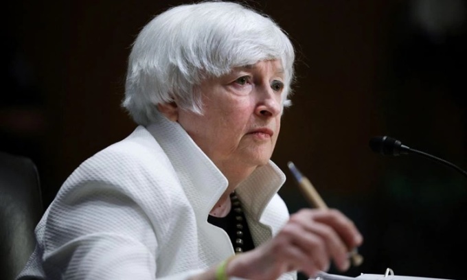 Bộ trưởng Tài chính Mỹ Janet Yellen điều trần trước Ủy ban Tài chính Thượng viện hồi tháng 6. Ảnh: Reuters.