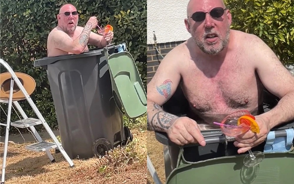 Old  Default Nóng bốc hỏa, người đàn ông biến thùng rác thành bể bơi ngâm mình và cái kết bất ngờ