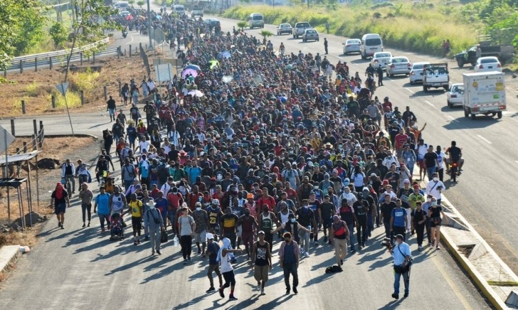 Người di cư hướng ở Tapachula, Mexico, hướng về phía biên giới Mỹ hồi tháng 11/2021. Ảnh: Reuters.