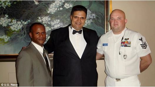 Leonard Glenn Francis (giữa), doanh nhân người Malaysia, bị quản thúc tại gia ở Mỹ vì tội đưa hối lộ cho các sĩ quan Hải quân Mỹ. Ảnh: Hải quân Mỹ.