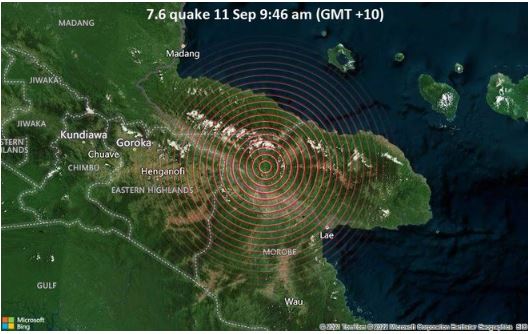 Động đất 7,6 độ richter ở ngoài khơi phía đông Papua New Guinea ngày 11/9. Ảnh: Microsoft Corporation Earthstar Geographics.