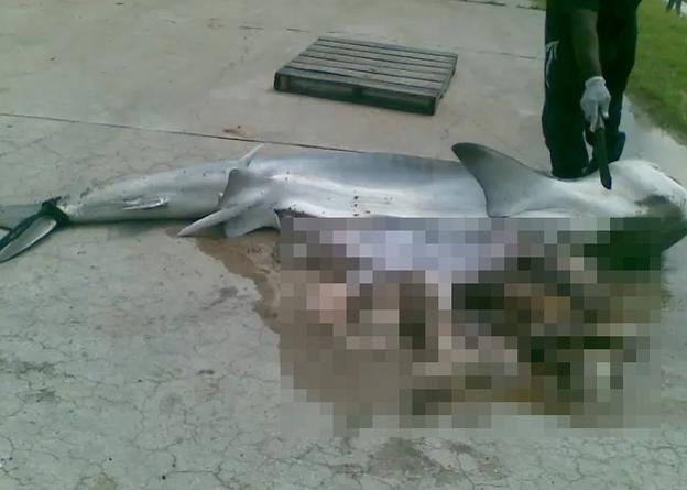 Con cá mập hổ bị mổ bụng sau khi nhè ra chân người (ảnh: The Sun)