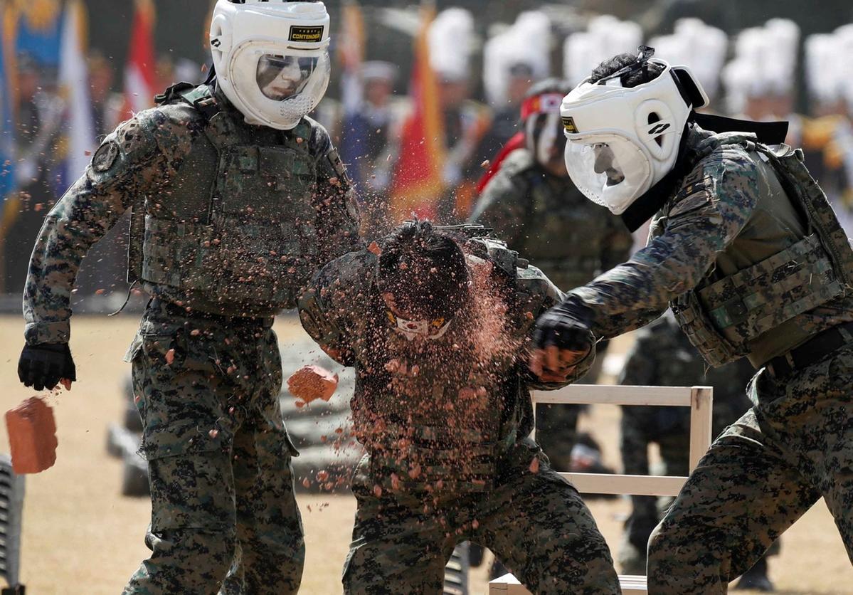 Các lực lượng bộ binh Hàn Quốc cũng phô diễn kỹ năng chiến đấu trong lễ kỷ niệm tại Gyeryongdae.