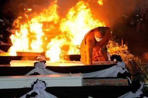 Một số quan chức nhắc nhở gia đình nạn nhân lấy lại ảnh chân dung của người thân, đồ chơi và di chuyển ra xa trước khi ngọn lửa bùng lên. Thân nhân của các nạn nhân đứng lặng lẽ, chắp tay cầu nguyện dù trong lòng xót xa khi nhìn ngọn lửa lớn dần và bao trùm quan tài chứa thi thể người thân.