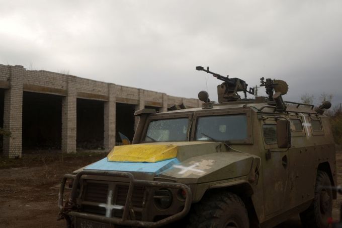 Xe thiết giáp của quân đội Ukraine tại làng Blahodatne, ngoại ô Kherson hôm 11/11. Ảnh: Reuters.