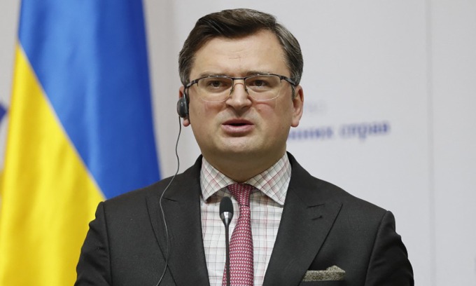 Ngoại trưởng Ukraine Dmytro Kuleba họp báo tại Kiev hồi tháng 2. Ảnh: AFP.