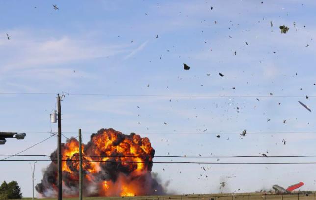 Hai máy bay quân sự lịch sử của Mỹ, một phi cơ ném bom B-17 và một chiến đấu cơ Kingcobra, đã lao vào nhau và nổ tung thành một quả cầu lửa trên bầu trời thành phố Dallas.