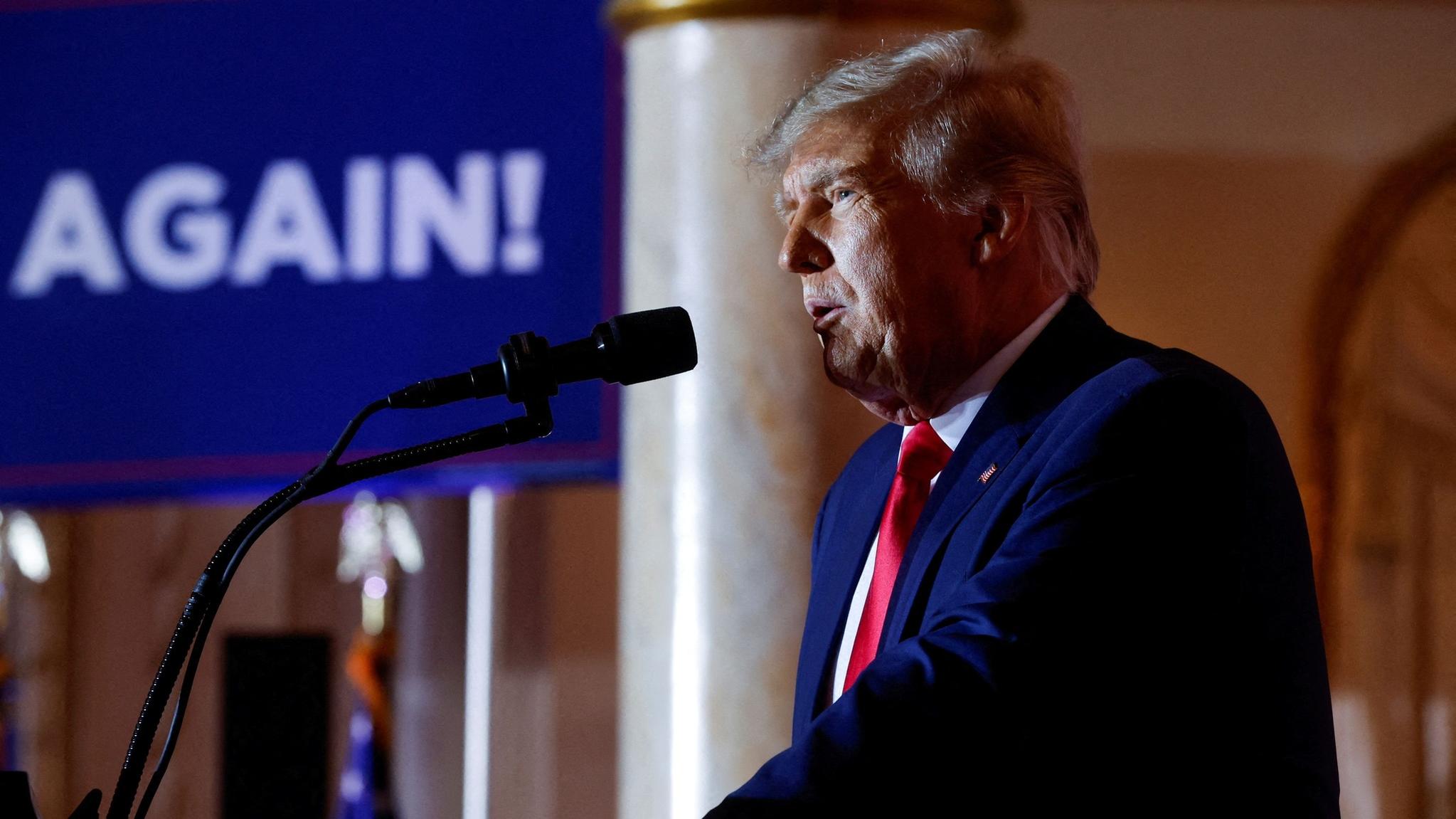 Cựu Tổng thống Trump tại buổi công bố tái tranh cử hôm 15.11 ở khu nghỉ dưỡng Mar-a-Lago, bang Florida. Reuters