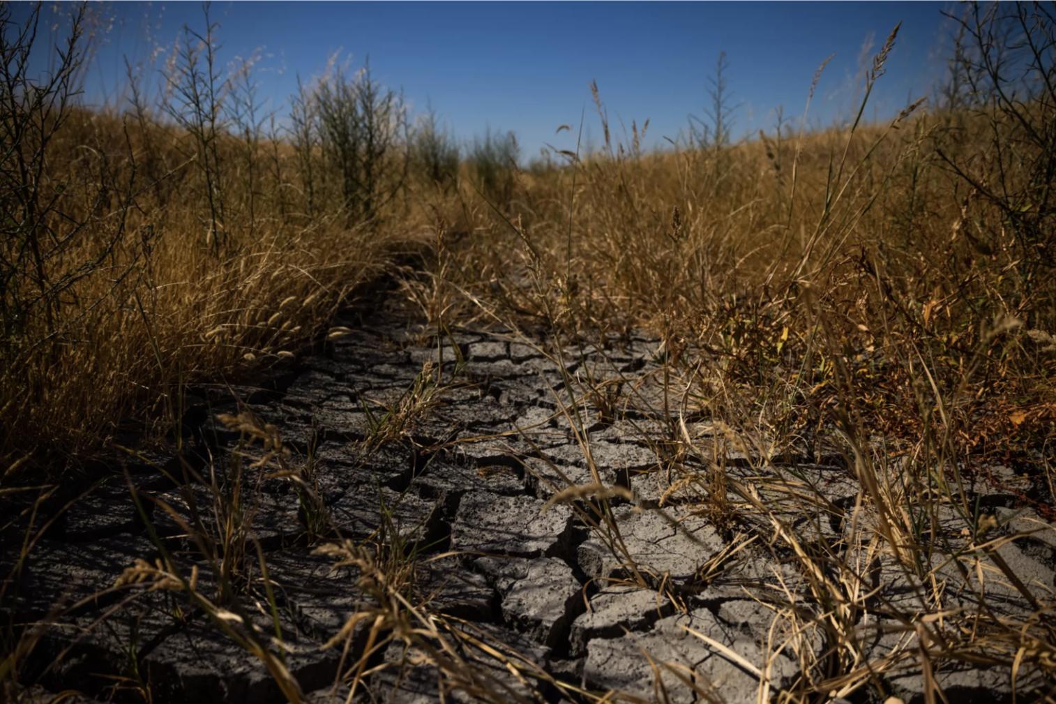 Đất khô nứt nẻ trong một con kênh nước ở khu vực trồng lúa gạo tại California. Ảnh: LA Times