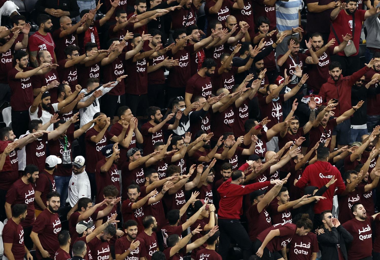 “Hãy chơi nào, hỡi những cầu thủ khoác áo đỏ thẫm!”, hàng trăm người trên khán đài - hầu hết là đàn ông, mặc áo phông màu đỏ thẫm in chữ “Qatar” bằng cả tiếng Anh và tiếng Arabic giống hệt nhau - đã hô vang theo chỉ dẫn của 4 đội trưởng đội cổ động viên tại trận đấu với Senegal.