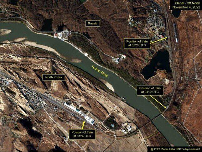 Một vài ngày sau, 38 North thông báo quan sát thấy một chuyến tàu di chuyển qua biên giới Nga - Triều Tiên giữa thời điểm Mỹ cáo buộc Triều Tiên đang bí mật cung cấp vũ khí cho Nga để sử dụng trong chiến dịch quân sự tại Ukraine.
