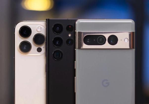 iPhone 14 Pro Max, Galaxy S22 Ultra và Pixel 7 Pro (từ trái sang).