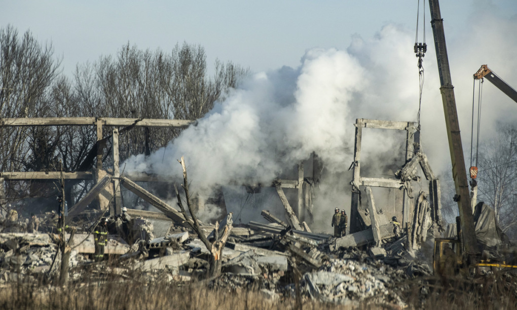 Đống đổ nát sau vụ pháo kích điểm đóng quân của Nga ở Makiivka hôm 1/1. Ảnh: Ria Novosti.