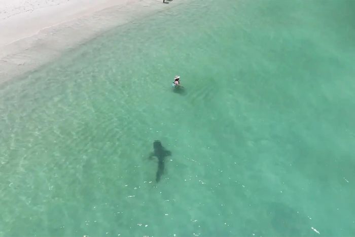 Những du khách đang bơi tại bãi biển Hillary's Dog gần Perth, Tây Australia, gần đây đã may mắn 'thoát chết' khi bị một con cá mập hổ âm thầm tiếp cận mà không hề hay biết.