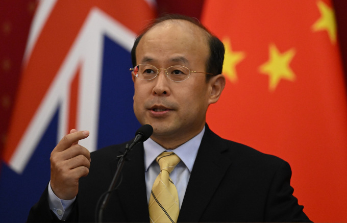 Đại sứ Trung Quốc tại Australia Tiêu Thiên trả lời họp báo tại đại sứ quán Trung Quốc ở Canberra ngày 10/1. Ảnh: Reuters