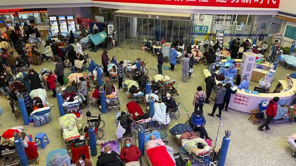 Bệnh nhân Covid-19 tại lối vào của một bệnh viện ở Thượng Hải, Trung Quốc, ngày 03/01/2023. AP