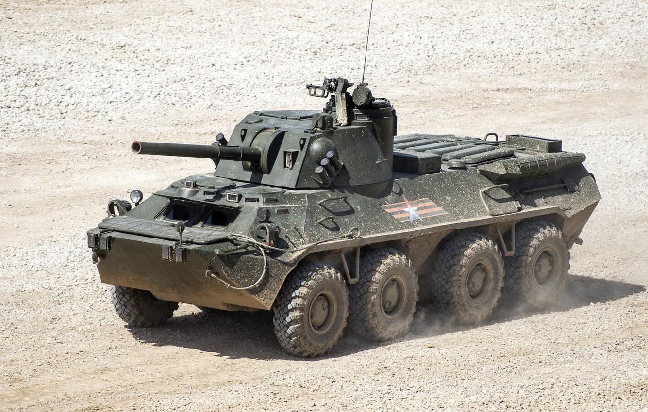 Pháo tự hành S23 Nona-SVK, gắn trên xe bọc thép chở quân BTR-80, trưng bày trước thềm diễn đàn kỹ thuật quân sự quốc tế Army-2015 ở khu vực Moskva. Ảnh: Sputnik