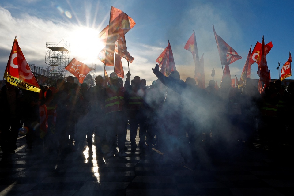 Các cuộc biểu tình đã tập hợp hàng nghìn người ở các thành phố như Paris, Marseille, Toulouse, Nantes và Lyon, theo AP. Hơn 200 cuộc biểu tình dự kiến diễn ra trên khắp nước Pháp trong ngày 19/1. Một cuộc biểu tình lớn tại Paris có sự tham gia của tất cả công đoàn lớn nhất nước Pháp. Ảnh: Reuters.
