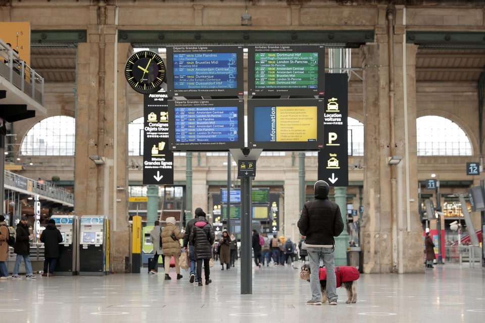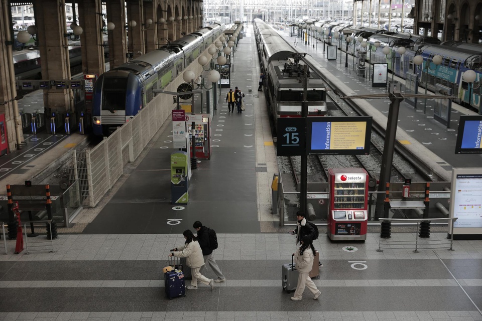 Phần lớn các chuyến tàu trên khắp nước Pháp bị hủy, bao gồm một số chuyến quốc tế, theo cơ quan đường sắt SNCF. Khoảng 20% chuyến bay cất cánh từ sân bay Orly của Paris bị hủy. Ảnh: AP.