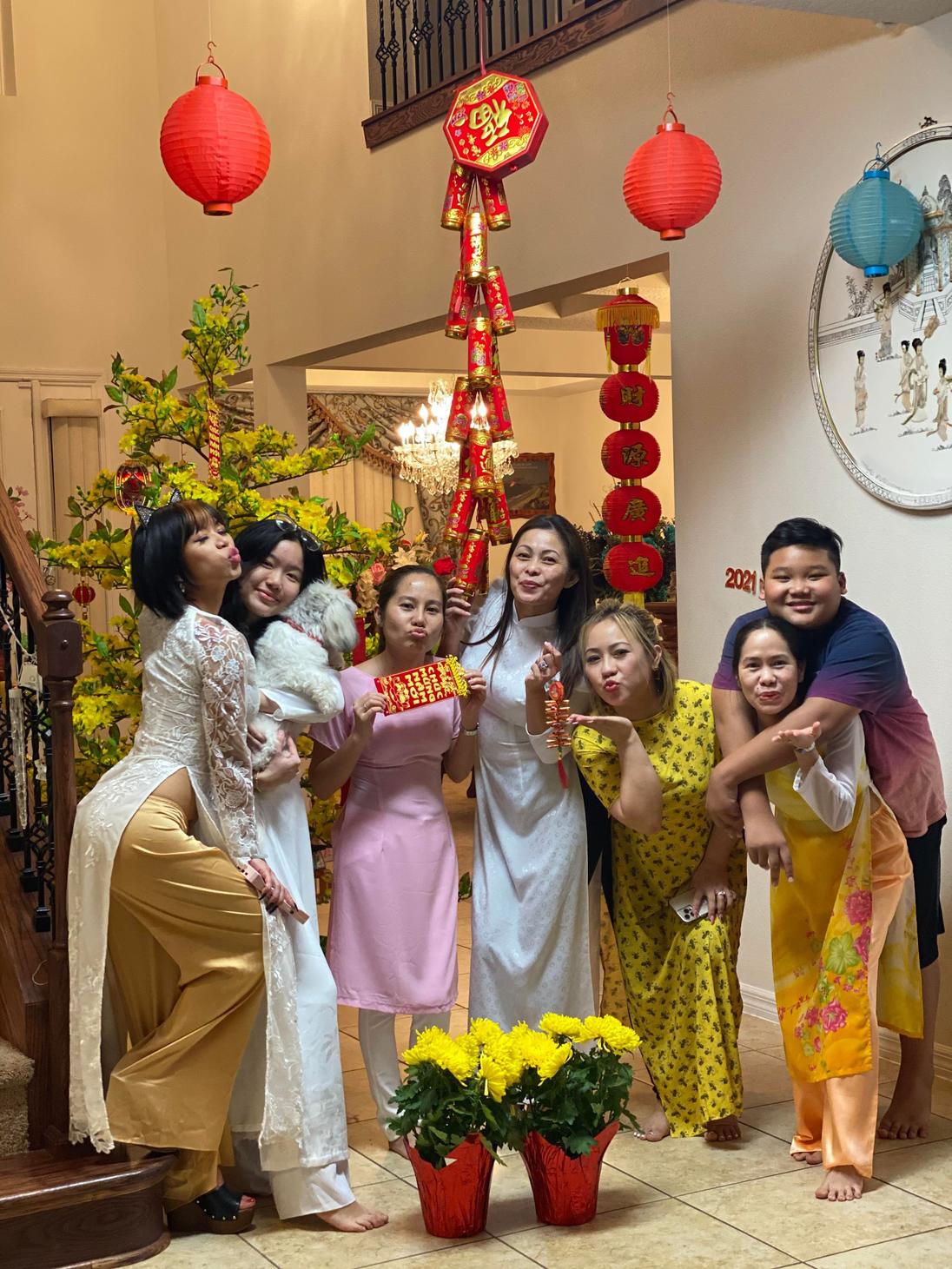Áo dài truyền thống trong ngày Tết tại xứ người. Ảnh: NVCC