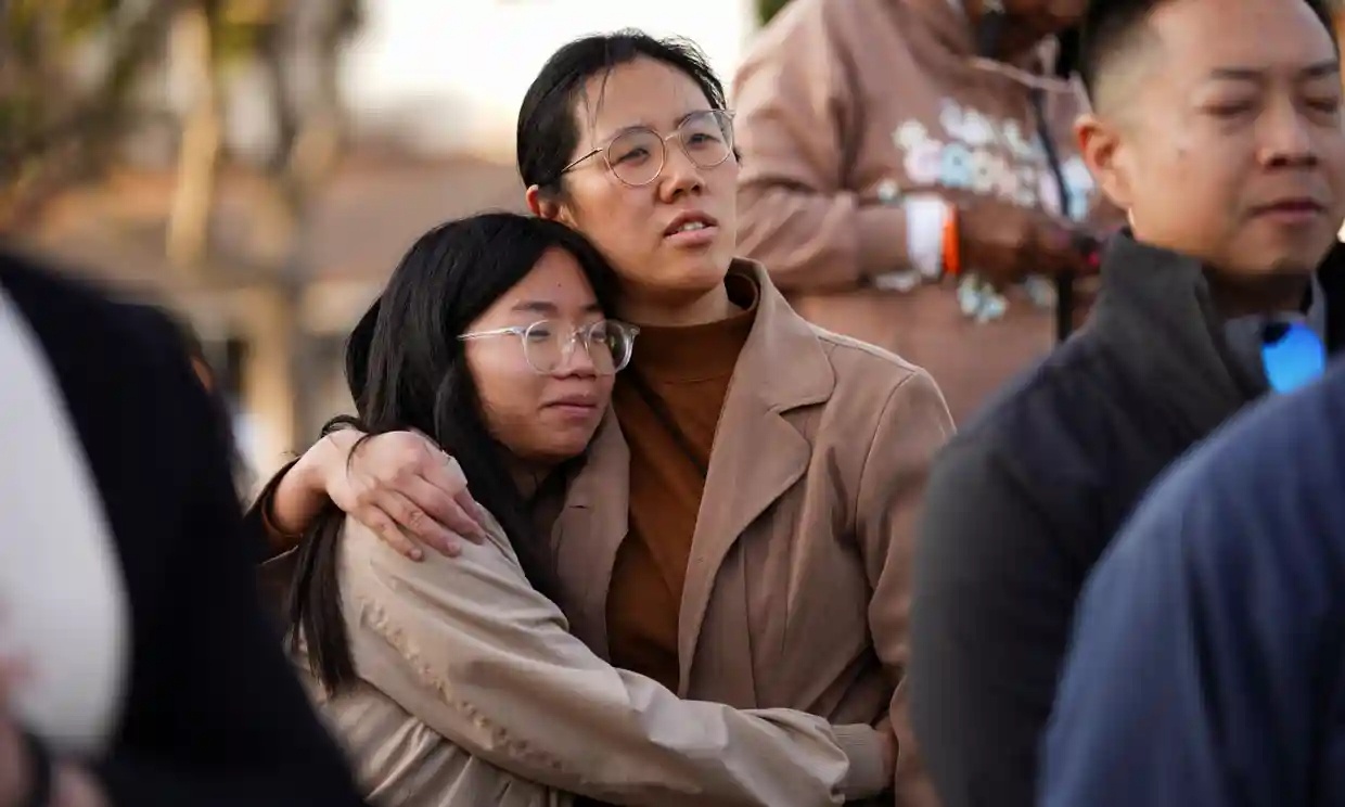 Lễ cầu nguyện gần hiện trường vụ nổ súng đêm giao thừa ở Monterey Park, California. Ảnh: Reuters.