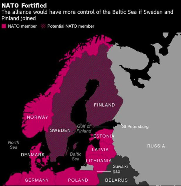 Bloomberg cho biết khi NATO mời Thụy Điển và Phần Lan gia nhập liên minh quân sự này vào tháng 6-2022, các nhà lãnh đạo NATO ca ngợi đây là một "quyết định lịch sử".