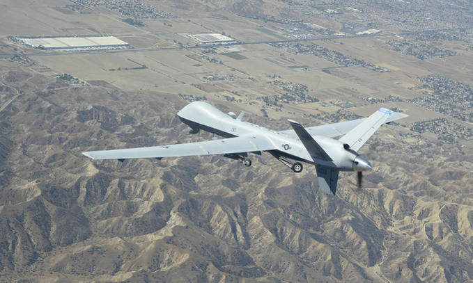 Máy bay không người lái MQ-9 Reaper của không quân Mỹ bay tới căn cứ March ở bang California tháng 9/2016. Ảnh: USAF.