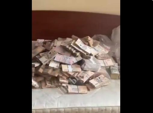 Trong đoạn video, các nhà điều tra đã thu được hàng chục cọc tiền giấy, tổng trị giá lên tới 1 triệu USD, từ ghế sofa tại nhà ông Myroniuk.