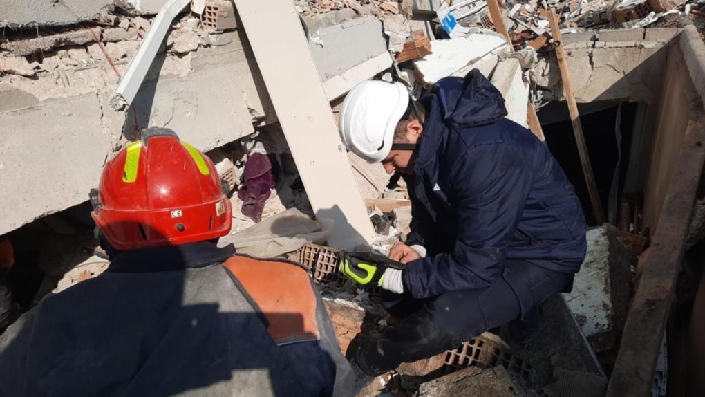 Lực lượng cứu hộ Thổ Nhĩ Kỳ sử dụng radar cầm tay quân sự để phát hiện chuyển động của nạn nhân mắc kẹt dưới đống đổ nát sau động đất.