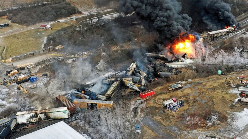 Tối 3/2, một đoàn tàu có toa chở hóa chất nguy hiểm bị trật bánh ở bang Ohio gây ra vụ cháy lớn. 2.000 người sống trong khu vực lân cận đã được sơ tán.