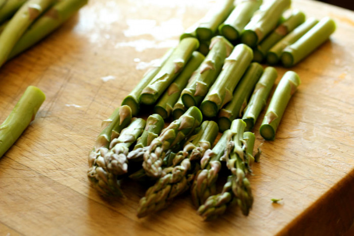 Cắt măng tây thành nhiều khúc, rưới thêm chút dầu ô liu.