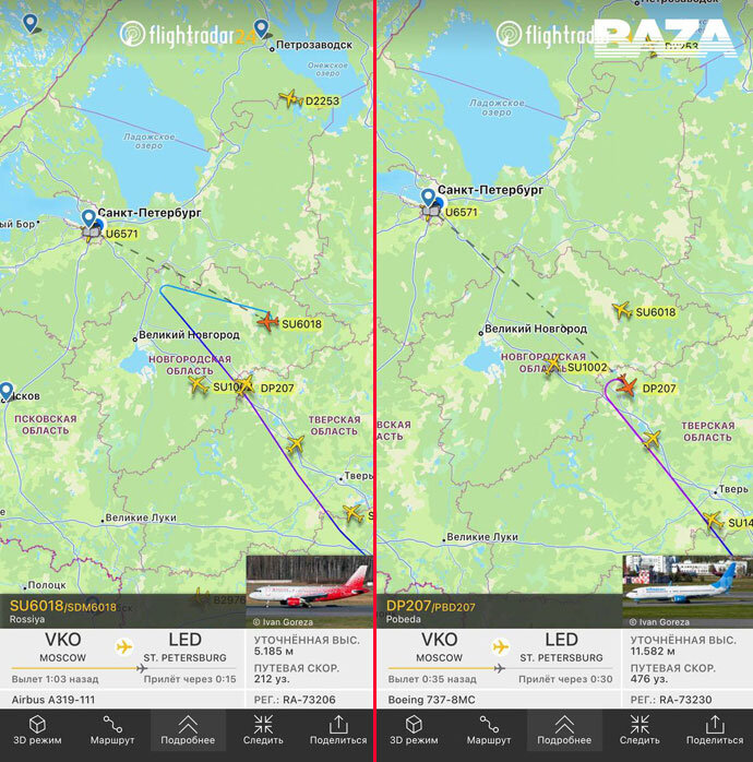 Trong khi đó theo Flightradar, máy bay dân sự không bay tới St Petersburg.