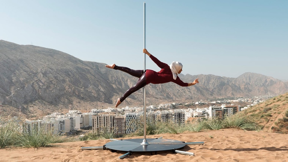Đằng sau bức ảnh gây chú ý về cô gái múa cột trên nền dãy núi Hajar. Eman Ali- Nhiếp ảnh gia đã tạo ra một hình ảnh đối chiếu đầy hấp dẫn giữa sức mạnh cơ thể của hướng dẫn viên múa cột Nusaiba Al Maskari và dãy núi Hajar (Oman) ở hậu cảnh.