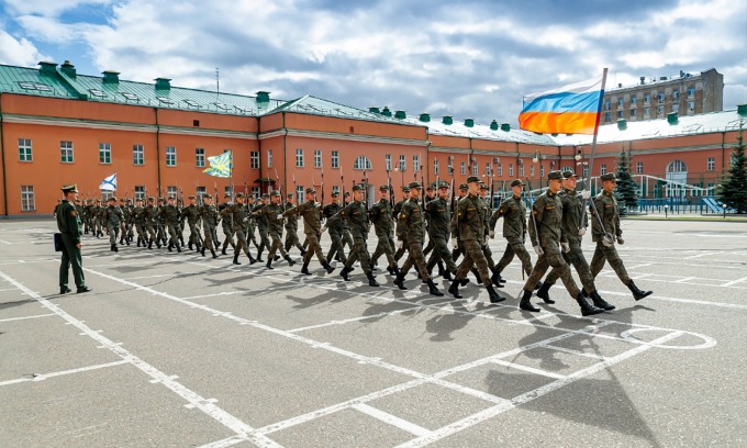 Tân binh thuộc trung đoàn 154 Preobrazhensky tập di chuyển theo đội hình tại thao trường ở Moskva hồi tháng 6/2021. Ảnh: BQP Nga.