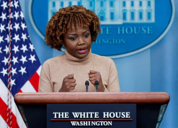 Thư ký báo chí Nhà Trắng Karine Jean-Pierre tại cuộc họp báo ngày 30/3. Ảnh: Reuters