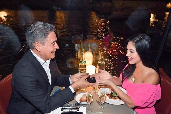 Kavie Trần kể: "Ban đầu anh ấy mời tôi đi Pháp du lịch kết hợp công tác. Chúng tôi có bữa tối trên một chiếc tàu ở dòng sông Seine, khi tàu đi ngang qua chân tháp Eiffel, anh ấy bất ngờ rút ra chiếc nhẫn và nói lời cầu hôn. Tôi vô cùng bất ngờ và xúc động".