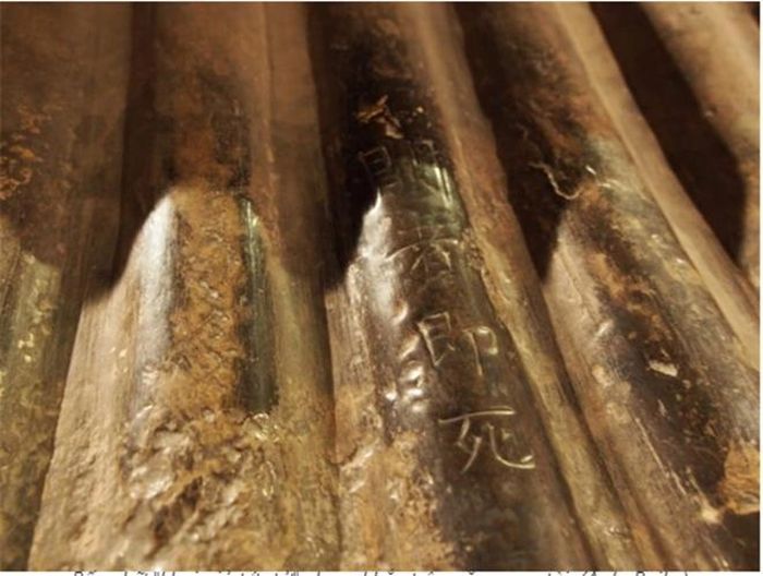 Ngay khi các chuyên gia chuẩn bị mở chiếc quan tài nhỏ ra để tiếp tục tìm kiếm văn vật, thì bất ngờ kinh hãi. Trên chiếc quan tài nhỏ có khắc bốn chữ lớn: "Khai giả tức tử" (Ai mở ra sẽ chết). Hóa ra, người xưa cho rằng khắc lời nguyền trên quan tài sẽ khiến những kẻ trộm mộ không dám trộm đồ bên trong.