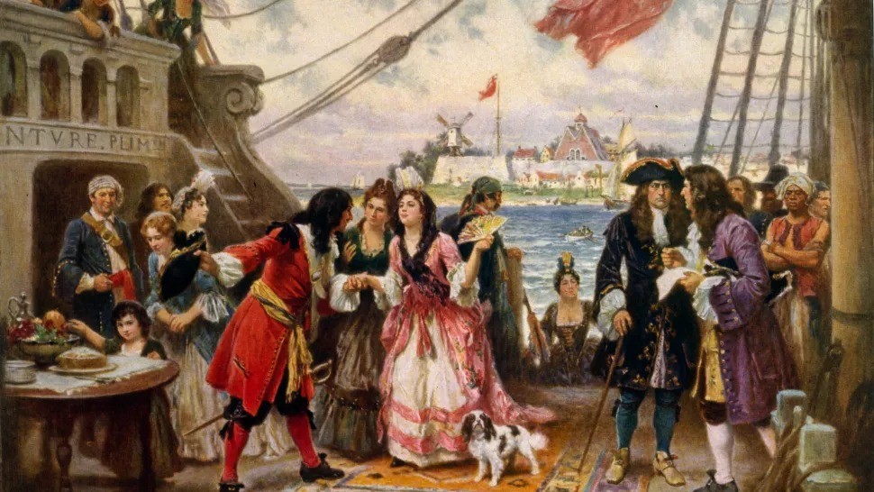 Hình minh họa "Thuyền trưởng William Kidd ở cảng New York, 1696," của Jean Leone Gerome Ferris. Ảnh: PhotoQuest/Getty