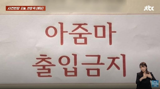 Bên dưới thông báo cấm cửa "các bà thím" là danh sách 8 đặc điểm để nhận diện. (Nguồn JTBC)