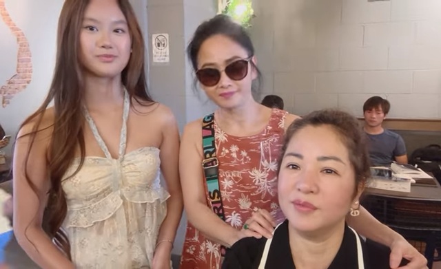 Mọi người đang ăn thì bất ngờ bắt gặp thêm con dâu NSƯT Bảo Quốc là ca sĩ Trung Hậu đi ngang qua, dẫn theo con gái tên Lọ Lem vô cùng xinh đẹp, cao ráo như một người mẫu.