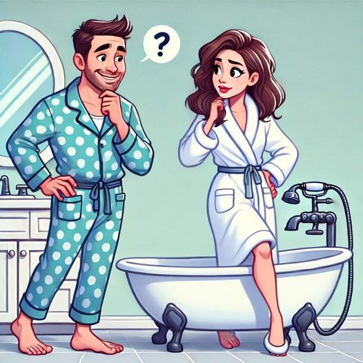 Tối hôm đó, cô ấy nhờ chồng chuẩn bị cho mình một bồn tắm nước ấm trong khi cô ấy chuẩn bị. Khi bước vào phòng tắm, cô ấy thấy bồn tắm chỉ được đổ một chút nước, vừa đủ để che nút xả. "Cái gì đây?" cô ấy hỏi, bối rối.