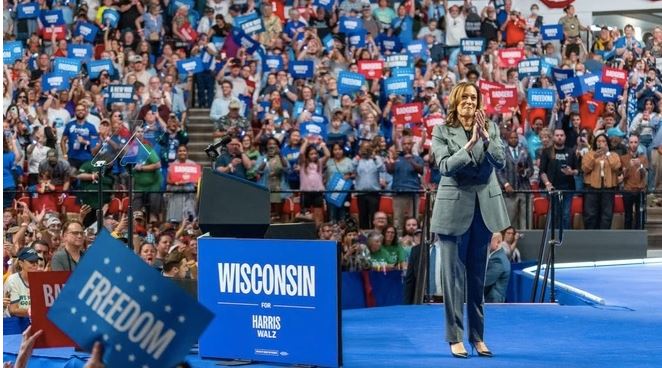 Bà Harris có buổi mít tinh tại Madison thuộc bang chiến địa Wisconsin vào ngày 30/10 (giờ địa phương). Ảnh: Milwaukee Journal Sentinel.