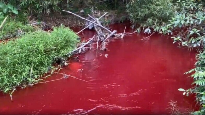 Nước suối bị nhuộm đỏ khiến người dân lo lắng (ảnh: MXH)
