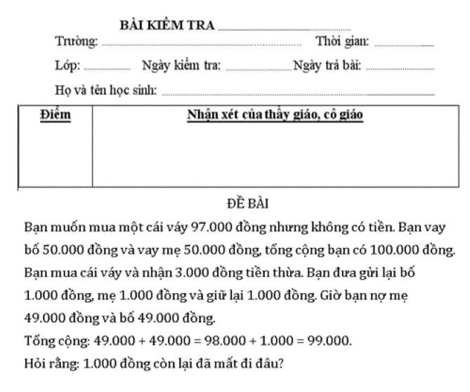 Hỏi rằng: 1.000 đồng còn lại đã mất đi đâu?