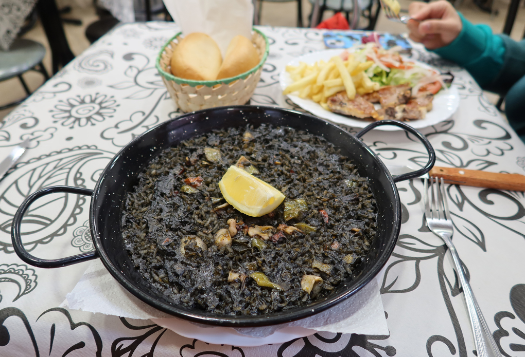 Không cưỡng nổi sự tò mò, chúng tôi đã gọi một phần cơm đen và được phục vụ trong chảo có đường kính hơn 30 cm, cỡ chảo phổ biến khi "ăn cơm hàng" ở Tây Ban Nha.