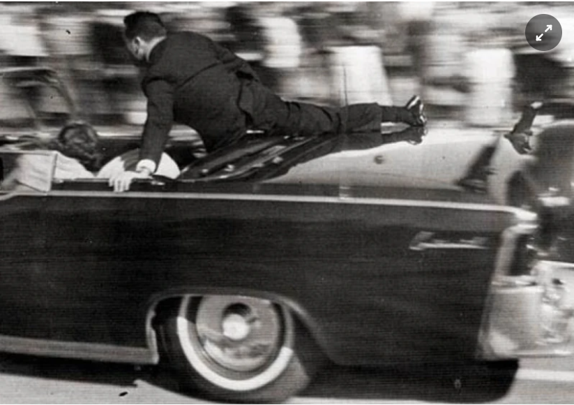Mật vụ Clinton Hill che chắn cho Tổng thống John F. Kennedy và Đệ nhất Phu nhân Jackie Kennedy khi ông bị ám sát trên chiếc xe Limousine chạy trên phố Elm ở Dallas ngày 22/11/1963. Ảnh: Wikimedia.