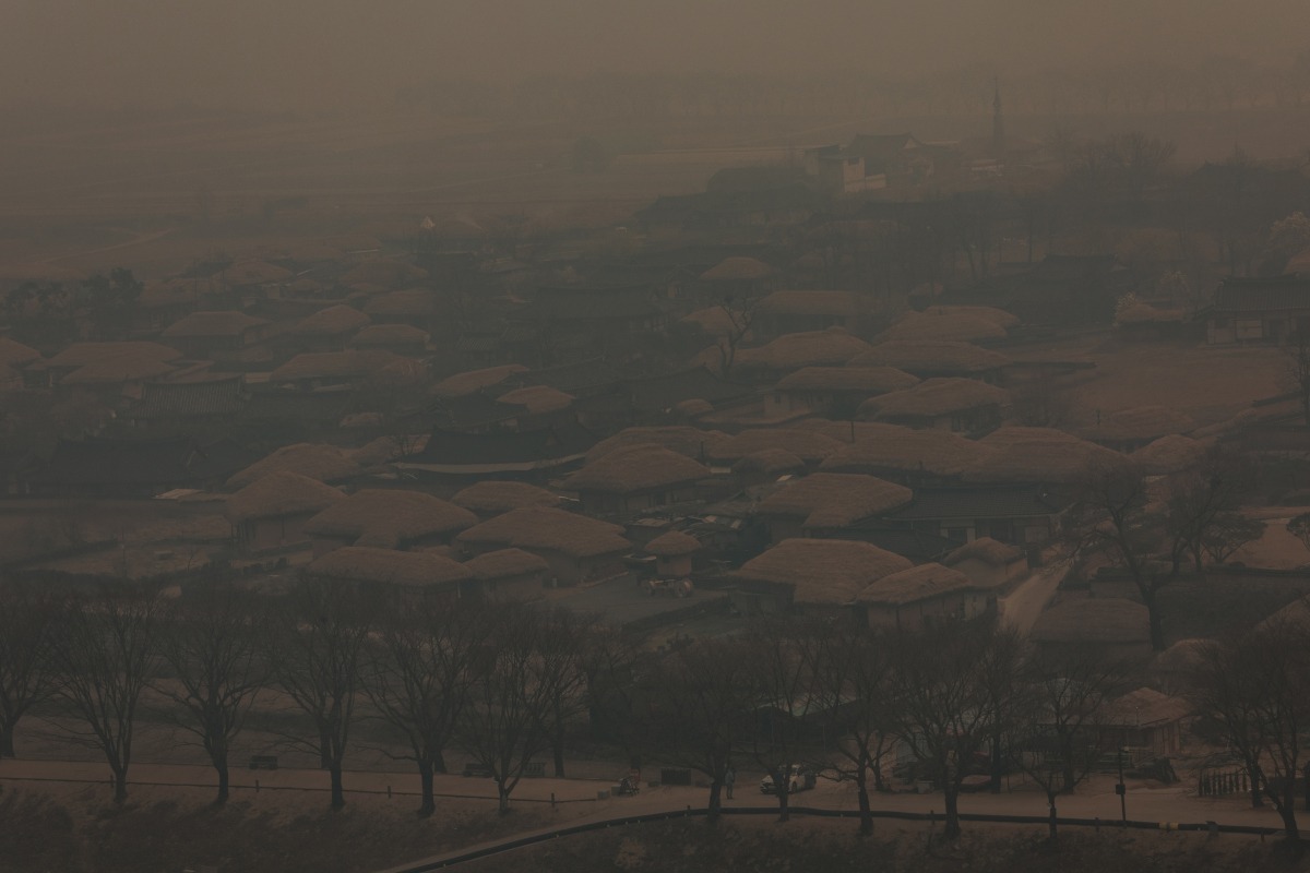 Khói bụi cháy rừng bao trùm khắp làng Hahoe, ngôi làng truyền thống ở Andong và là di sản thế giới được UNESCO công nhận.